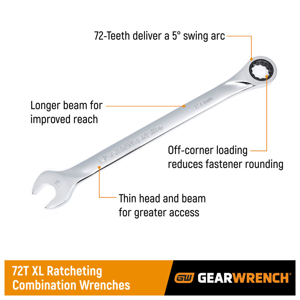 Gearwrench XL Ratschen-Ringmaulschlüssel, 72 Zahn, 12-kant, 16-tlg.