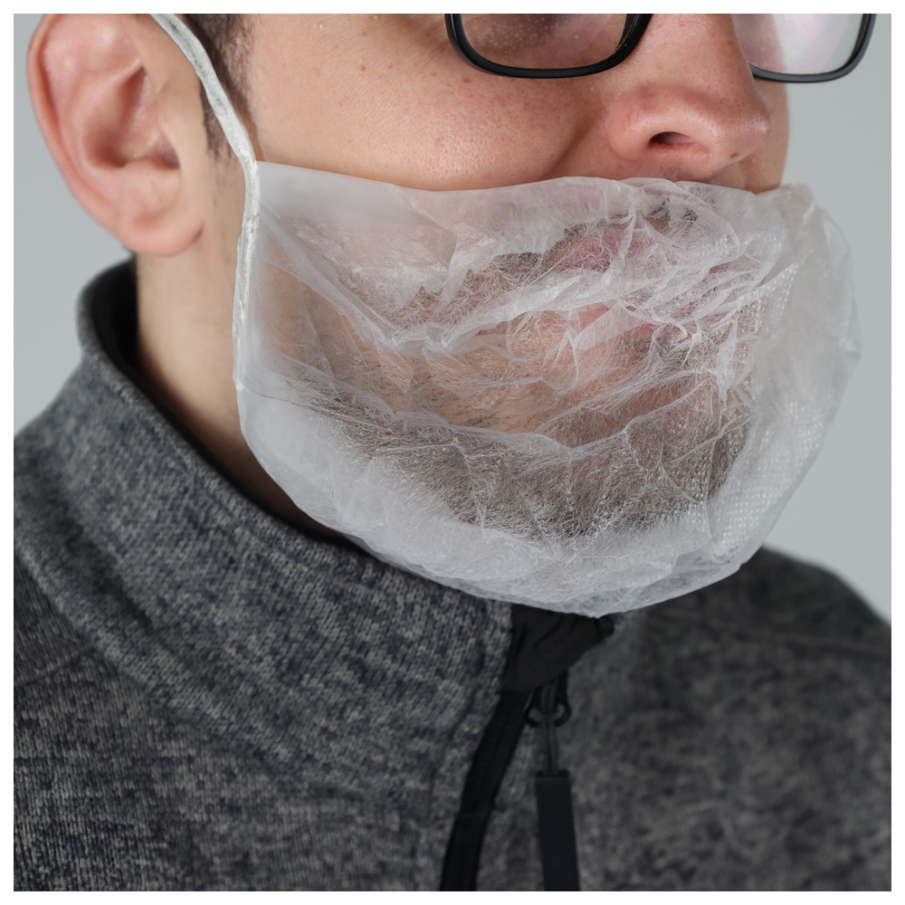 Der Bartschutz, 50 x 30 cm, weiß bestehend aus hochwertigem Polypropylen-Spinnvlies bietet ein angenehmes Tragegefühl und deckt den Bart sauber ab.
